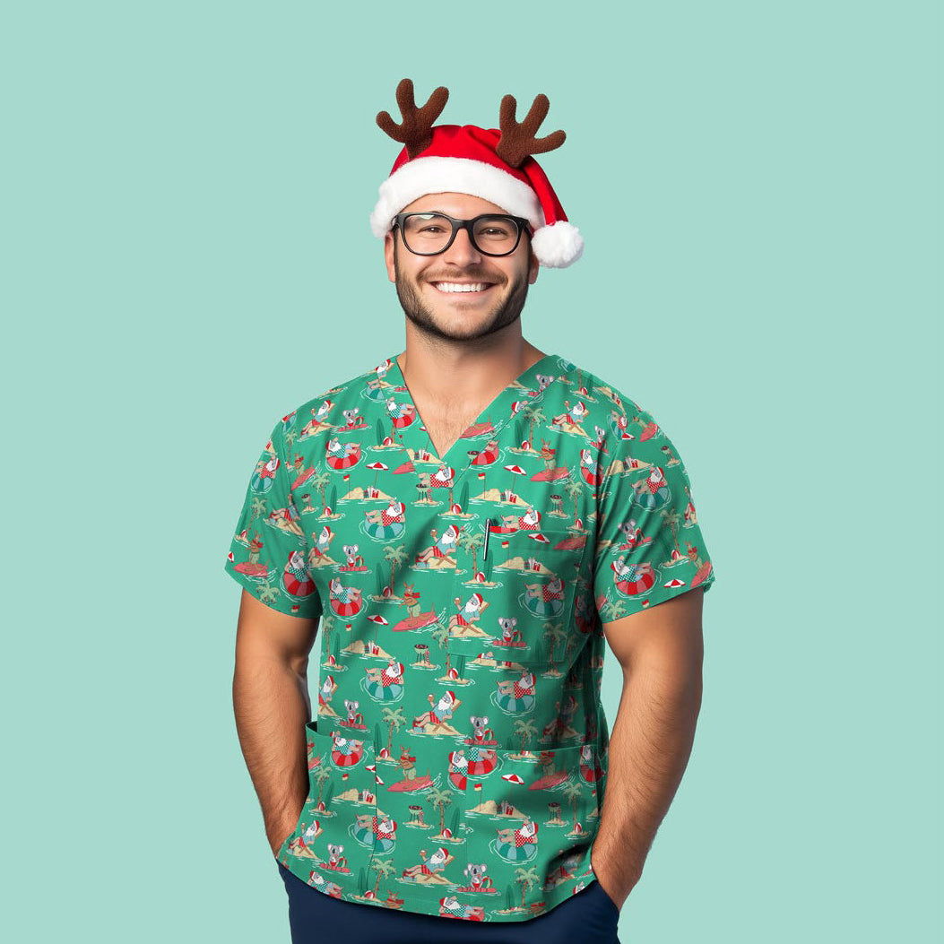 CST547US Unisex Christmas Scrub Top - Aussie Christmas