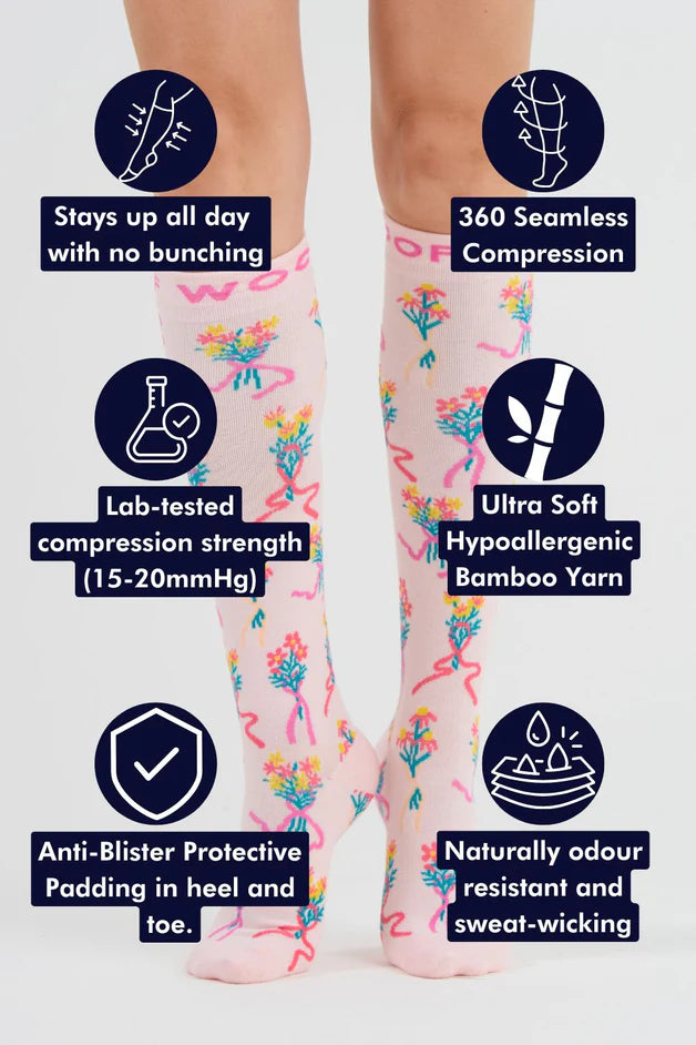 Our 1 in 7 Breast Cancer Awareness Compression Socks combine the comfort and luxury of bamboo fabric with 360° seamless compression.