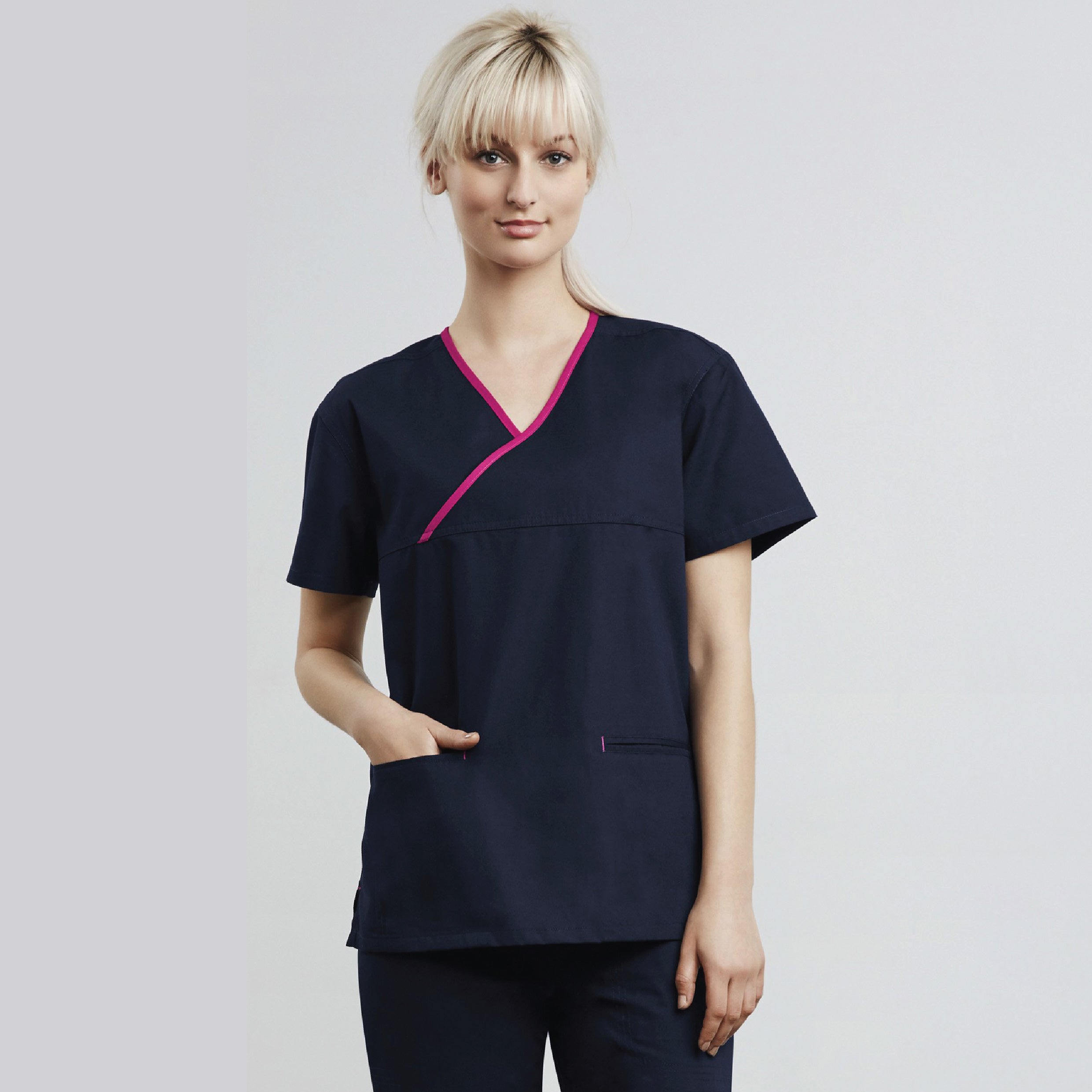 Contrast crossover style can create task or workplace identity and adds a point of difference. A natural stretch in the fabric allows for ease of movement and resists creasing.