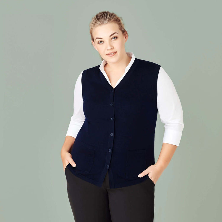 CK961LV - Womens Fashion Biz Button Front Knit Vest
