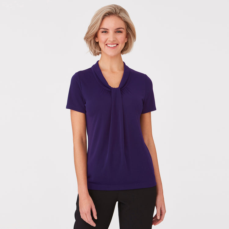 Exceptionally soft and cool to wear, Pippa Knit offers the ultimate in comfort. The unique and versatile draped neckline with gathered front detail creates a feminine look for the corporate environment. The stretch Matte Jersey is easy care and flatters all body shapes and sizes, making it the centrepiece of your working wardrobe.
