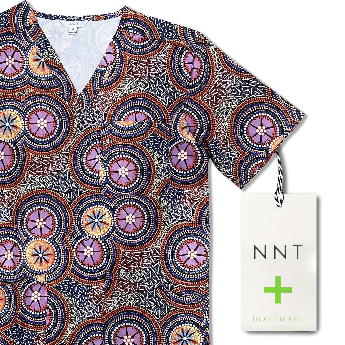 Our bestselling unisex scrub top is enlivened with a standout artwork by Indigenous artist Glenda Nangala Briscoe. The Bush Tucker Scrub Top boasts all the features you love — a durable finish, V neckline, pockets and side splits at the hem – elevated with this special limited-edition print.