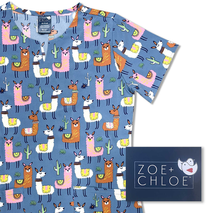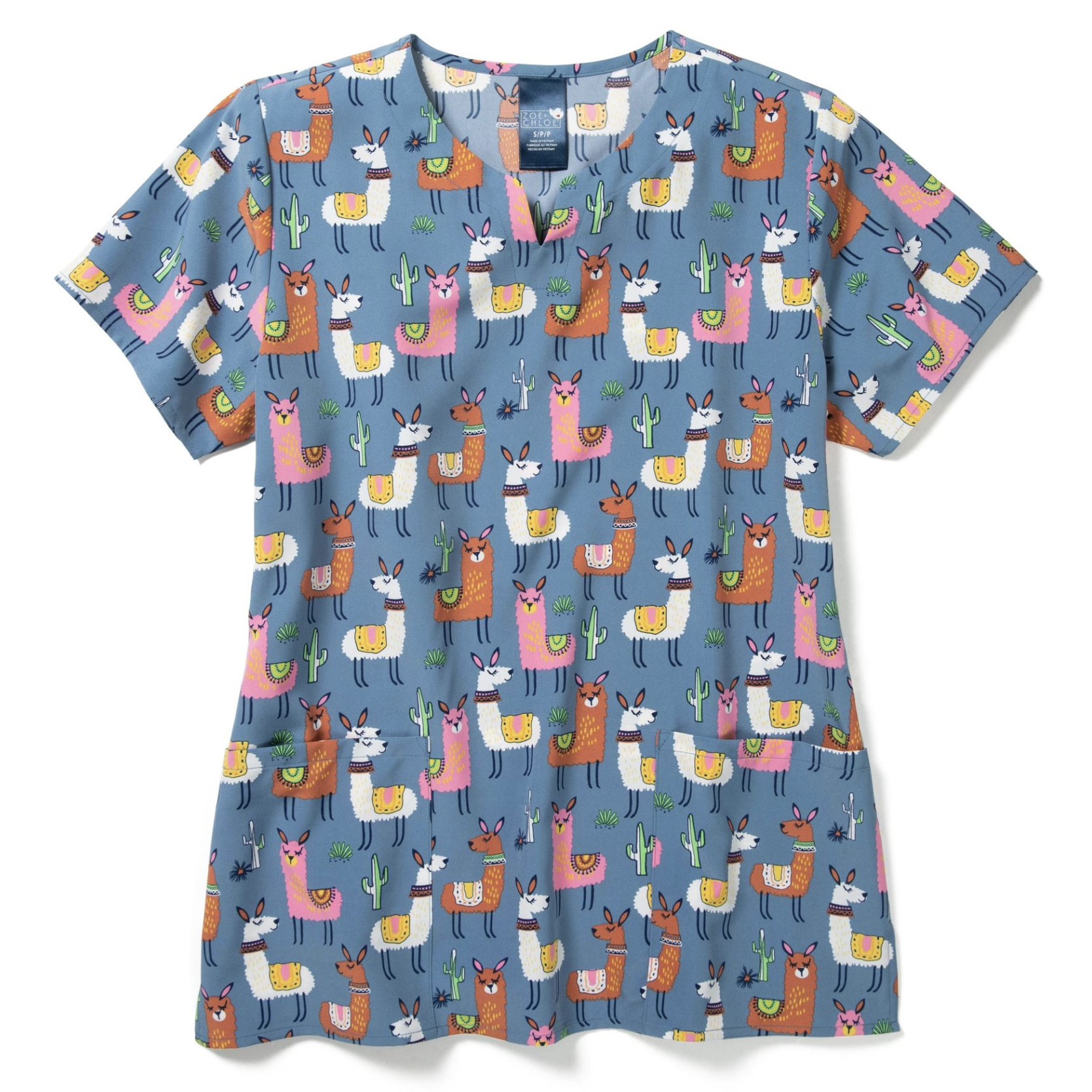 Zoe+Chloe Scrubs continues to bring you beautiful print scrub tops with the classic Zoe+Chloe fit that you love. The stylish notch neckline isn’t your typical v-neckline and adds a unique style feature to your medical scrubs uniform. This Women’s Notch Neck Print Top is made with a polyester/spandex fabric that is super comfortable and flexible. The side hem vents are a small addition but a big deal when it comes to more ease of movement. Two roomy lower patch pockets can hold your essentials while you navigate through your shift in comfort and style.