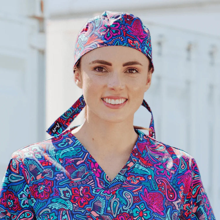 These unisex scrub caps are 185gsm so they’re sturdy. They’re made from 97% cotton and 3% elastane with horizontal stretch for flexibility while you’re flat out.