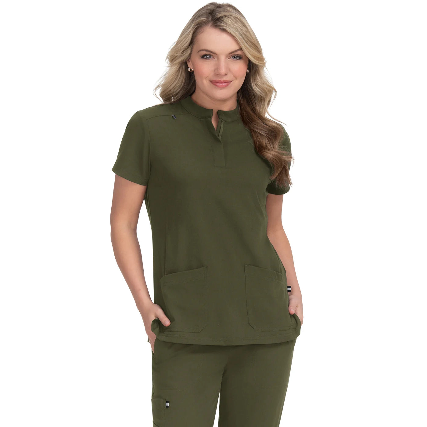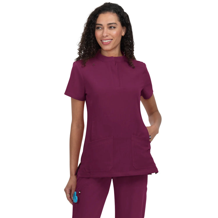 1081 - Womens Koi Driven Mandarin Collar Scrub Top