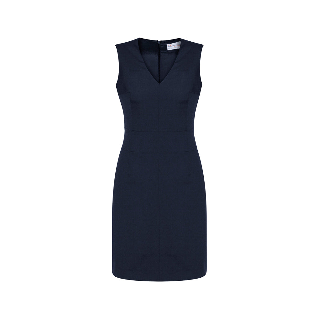 Elegant dress designed to be worn on its own or layered. With natural drape, full lining and a concealed back zip.