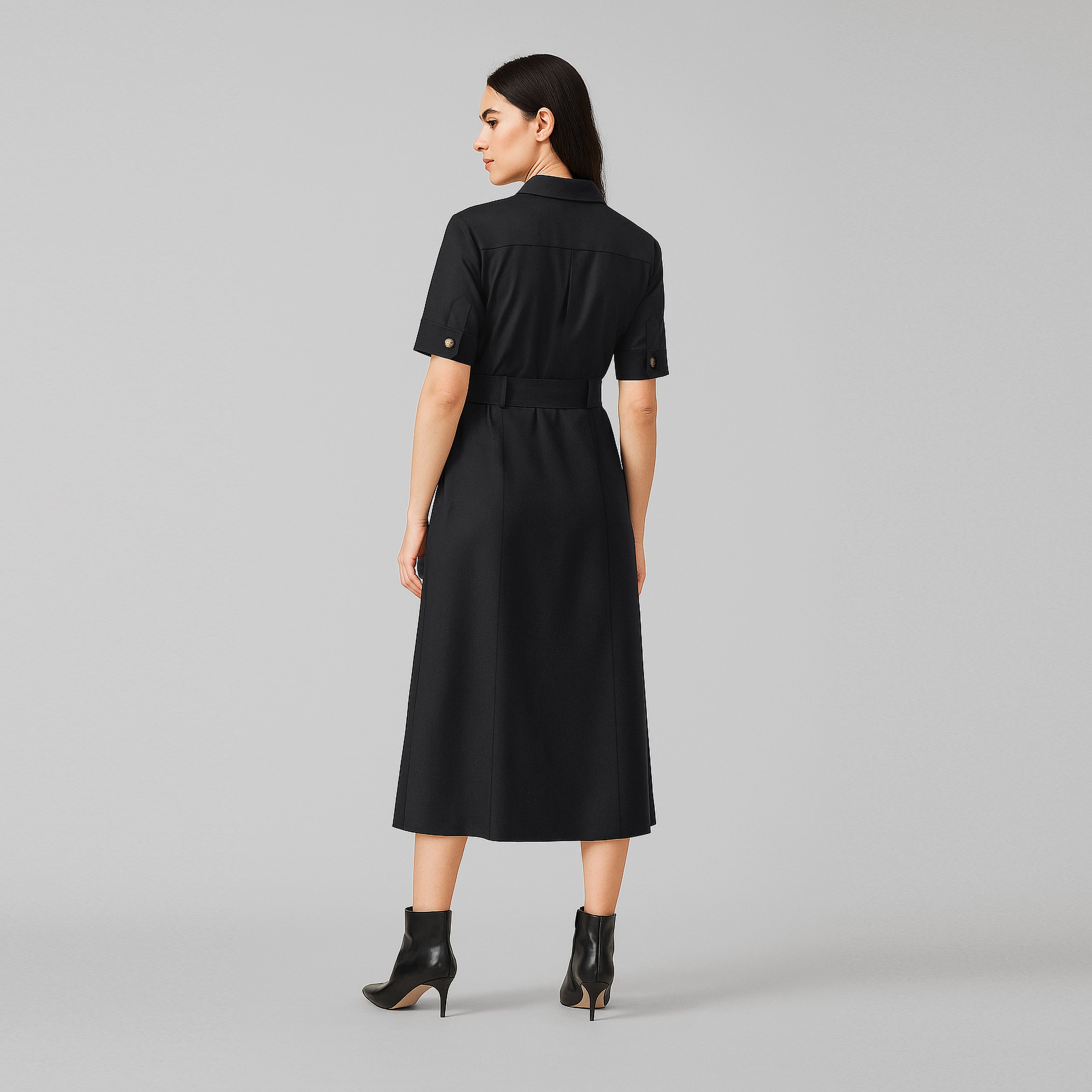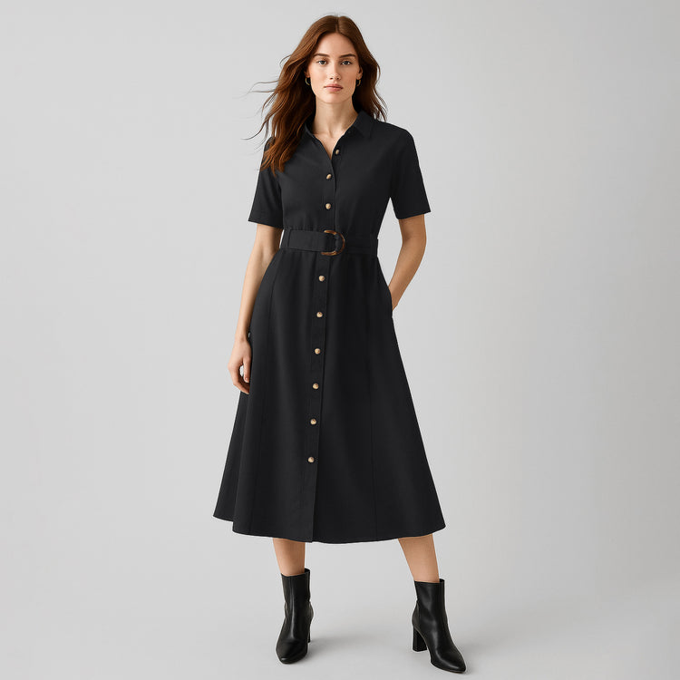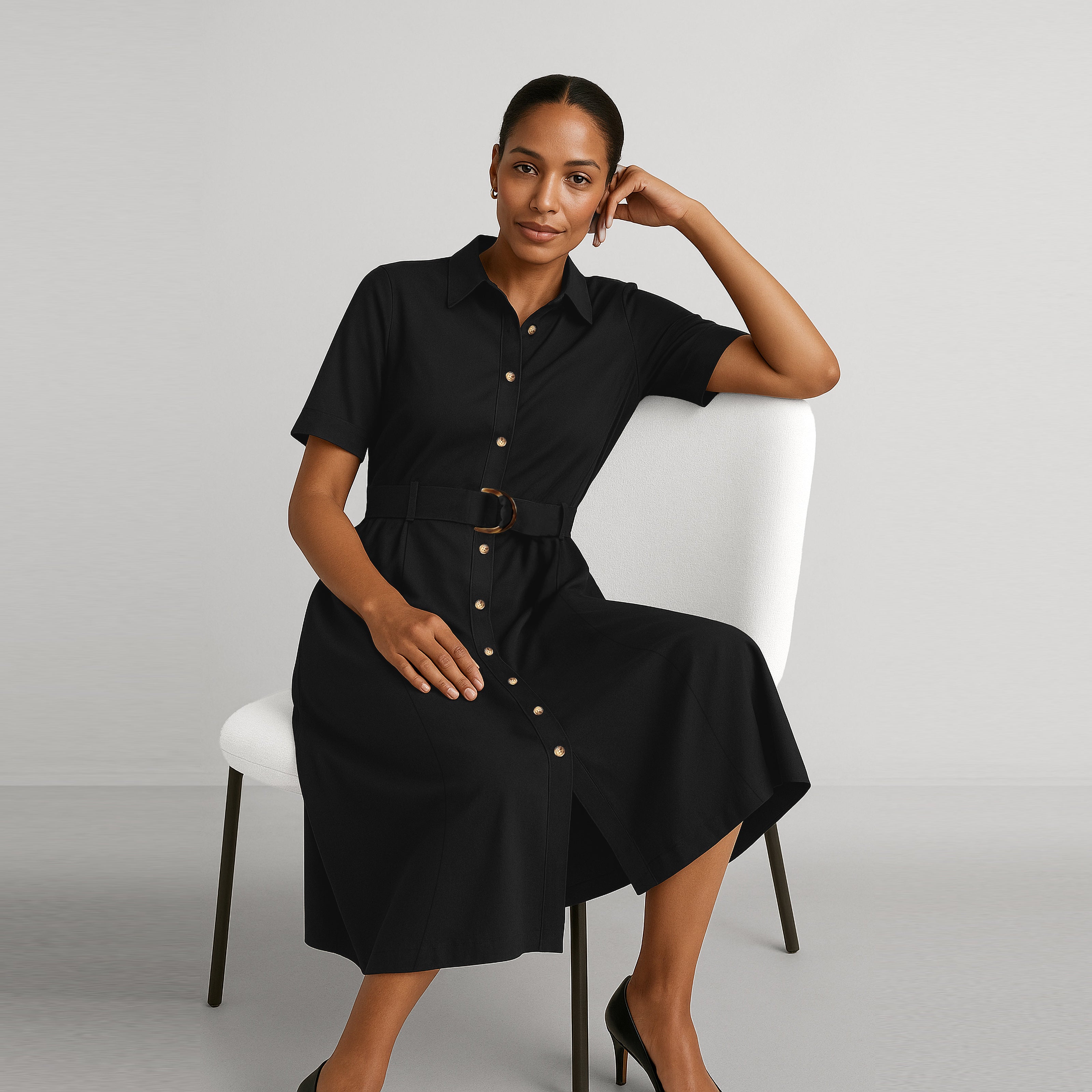 Elevate your wardrobe with the Adele Midi Dress for a refreshing, stylish look for the office. Designed to sit mid-calf, for a modern look. Style with long boots, heels or flats.