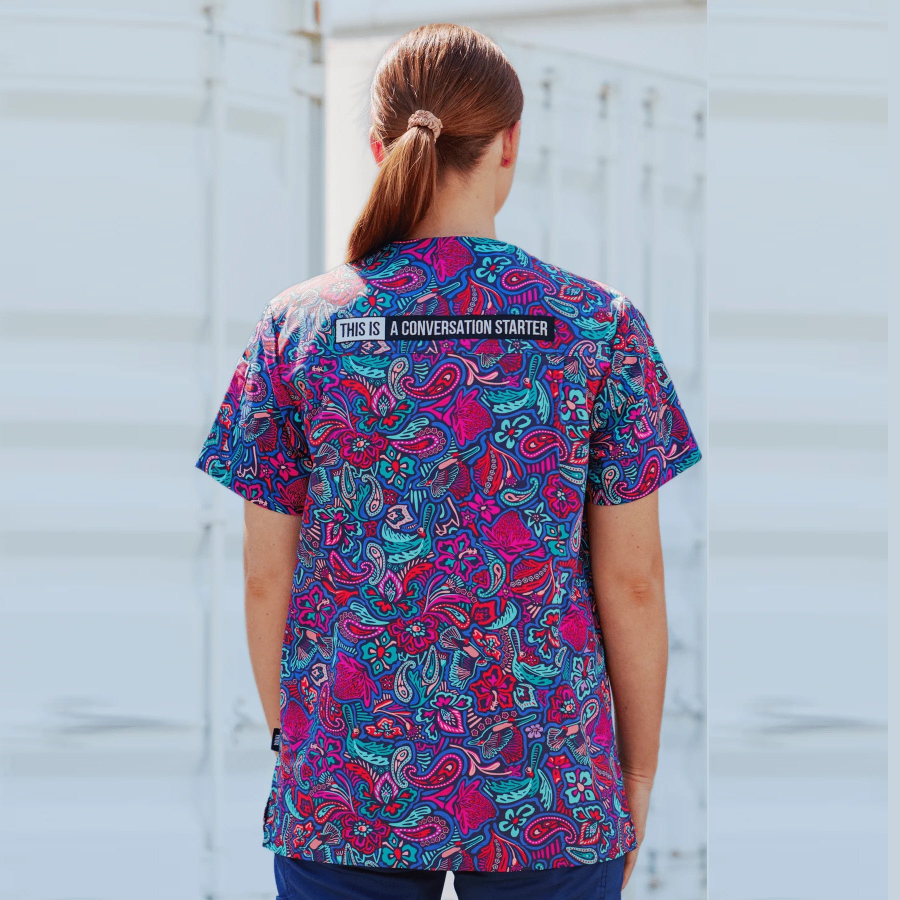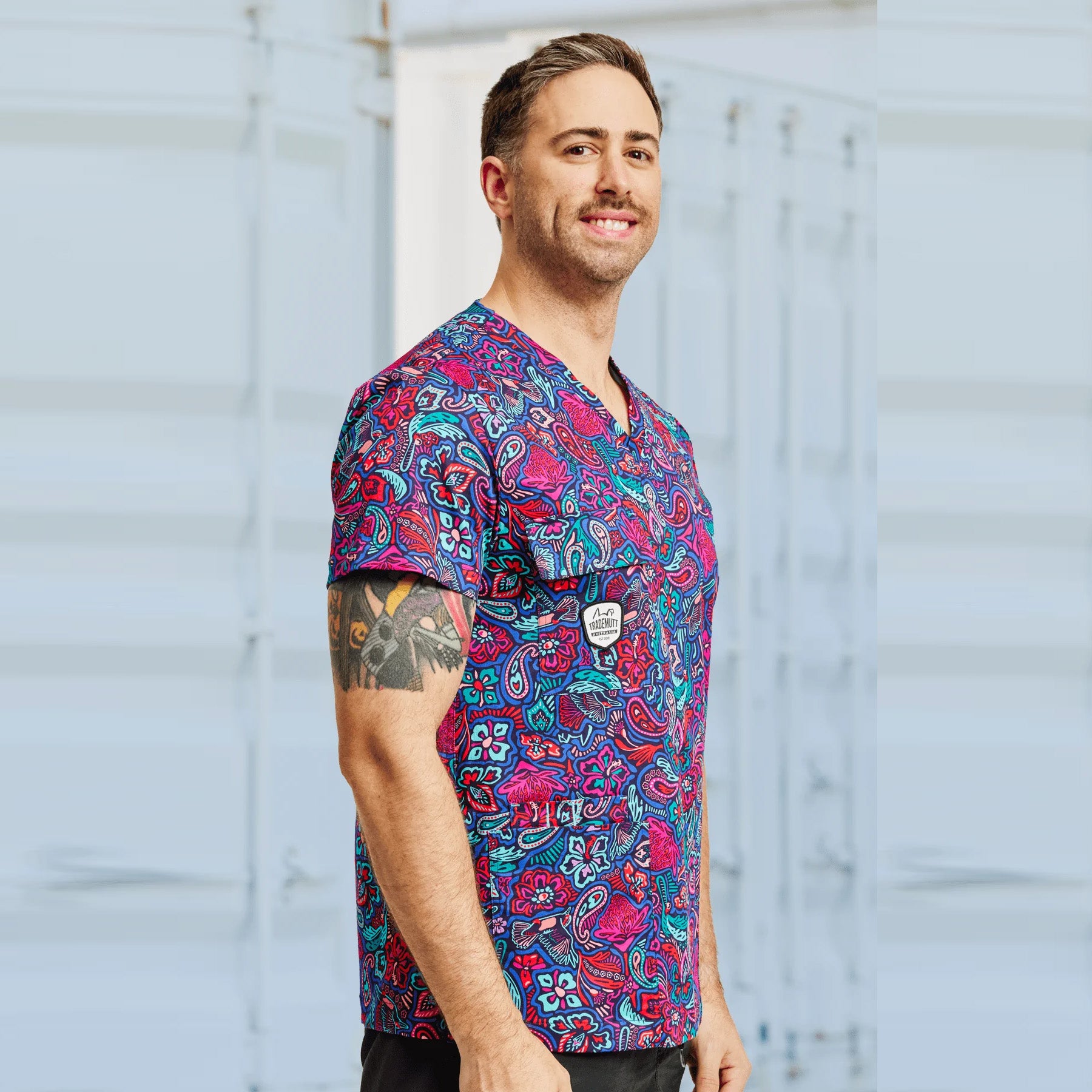 Blinky Chill unisex scrubs are our latest range of conversation starting nursing scrubs. This unisex scrub cut fits everyone and is perfect for starting conversations on shift with patients, their families, and your colleagues.