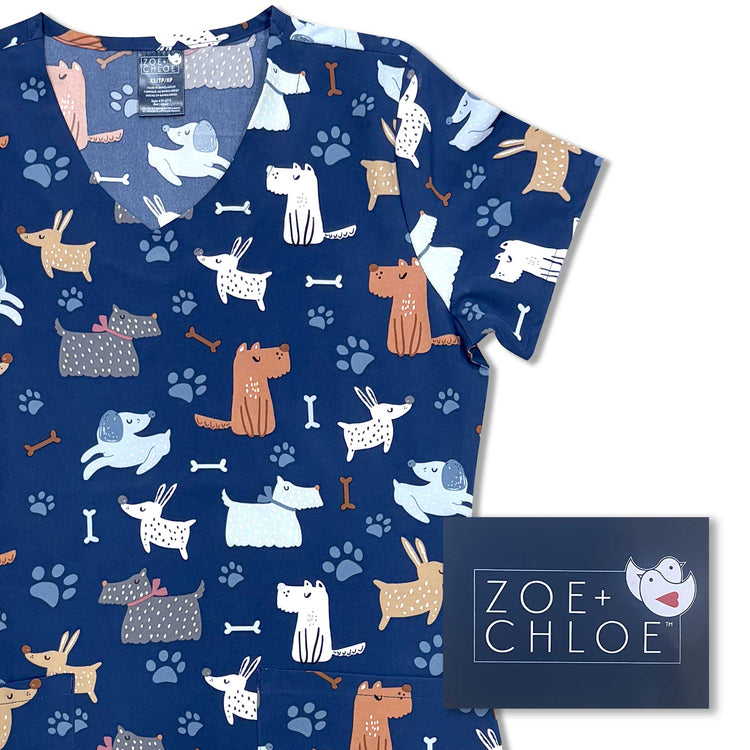 Womens Printed Scrub Top - Dapper Dog