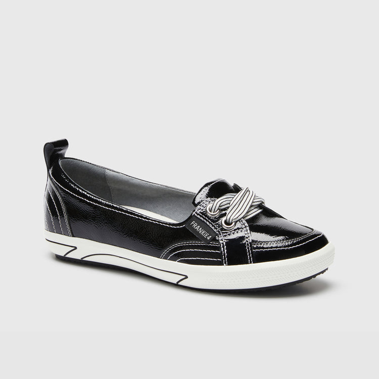 Set off your style with polished Sophie Black Patent. Crafted with luxurious leather and lightweight, layered cushioning, Sophie combines the ease of a slip-on with the style of a flat for support in every step.