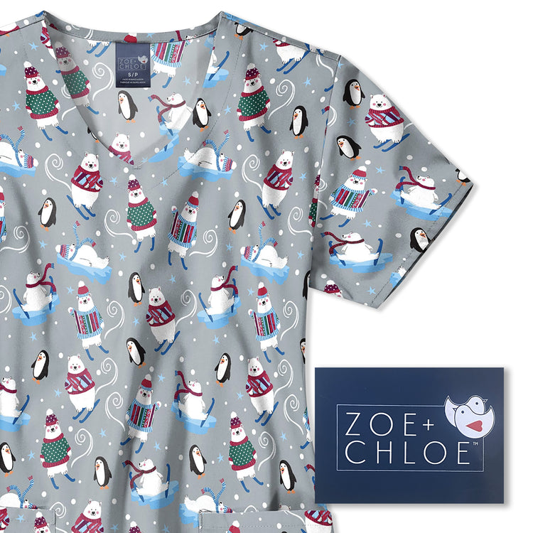 The Zoe+Chloe scrub tops are a great conversation piece and offer a calming effect to your patients with a gentle smile right when you walk in the room. The timeless gentle curved V-neckline combine with the functional two front patch pockets and the luxuriously soft yet super durable Polyester blend fabric for the best scrub tops at the best prices.